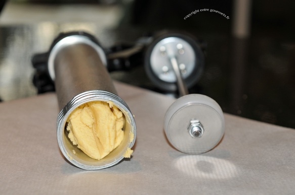 Transférez la pâte dans une poche à douille cannelée ou pour moi une «seringue» Matfer.