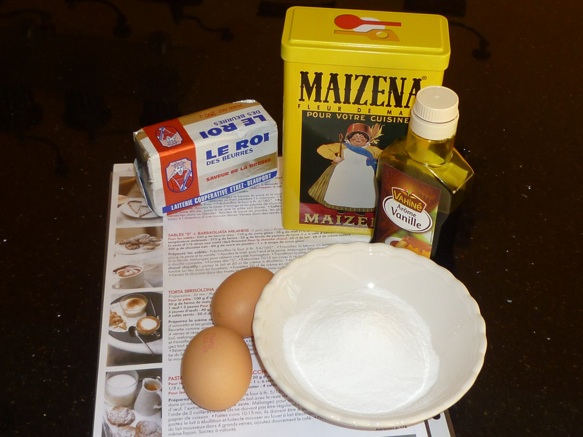 Préchauffez le four à 160°C. Mélangez le beurre avec le sucre glace et la vanille.Ajoutez l’oeuf et le jaune. Incorporez la farine et la fécule afin d’obtenir une pâte homogène.