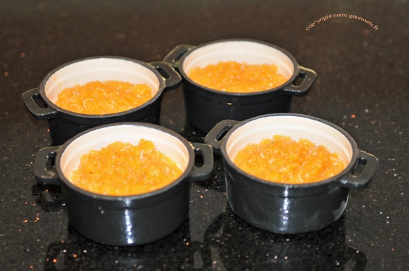 Disposez cette purée au fond de 4 cercles beurrés ou dans des petites cocottes.